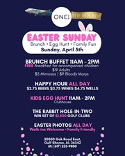 Celebrate Easter Sunday with a family-friendly brunch buffet, kids egg hunt, all-day happy hour, and festive activities at ONE Club in Gulf Shores. Enjoy great food, drinks, prizes, and Easter photos for all ages!